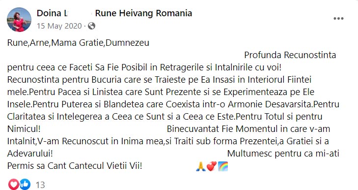 Când ajungi cu acest scop autentic, în care vrei să afli adevărul despre tine și despre lumea în care trăiești și vii cu inima deschisă, fără prejudecăți sau așteptări despre cum ar trebui să fie, în mod sigur vei pleca cu o nouă înțelegere a cine ești cu adevărat.